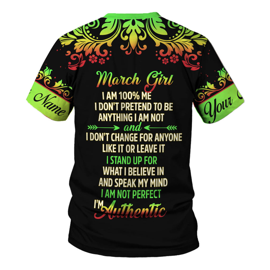 CustomsPig Personalized Tops March Girl I Am 100% Me All Over Printed