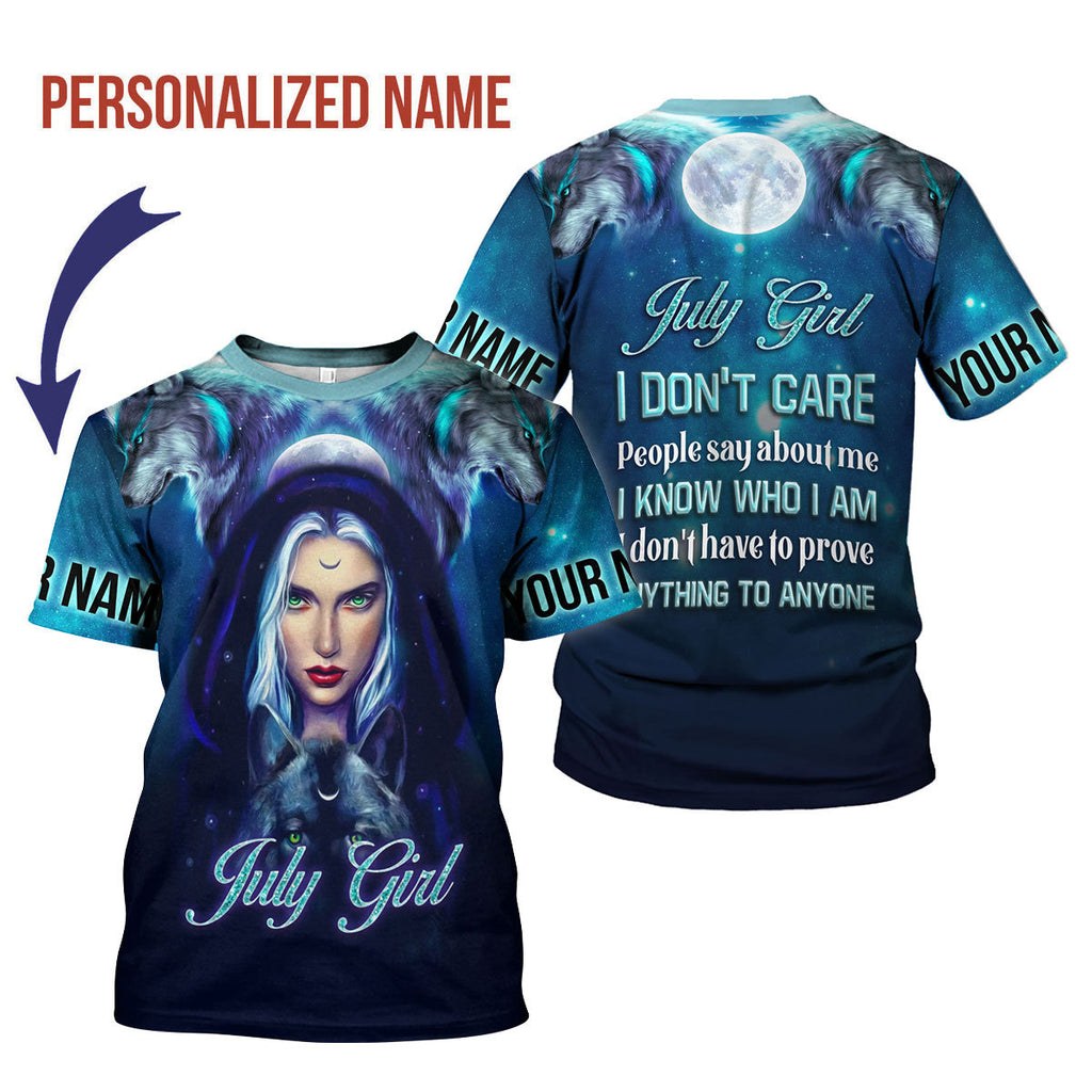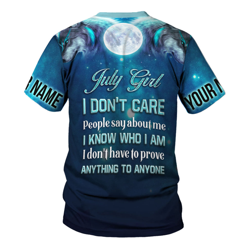 CustomsPig Personalized T-Shirt July Girl I Don't Care All Over Printed