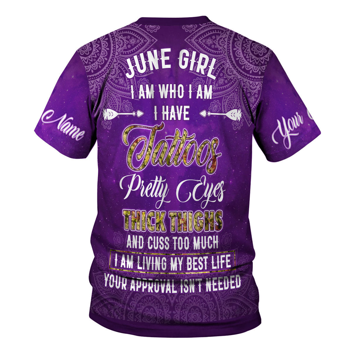 CustomsPig Personalized T-Shirt June Girl I Have Tattoos All Over Printed