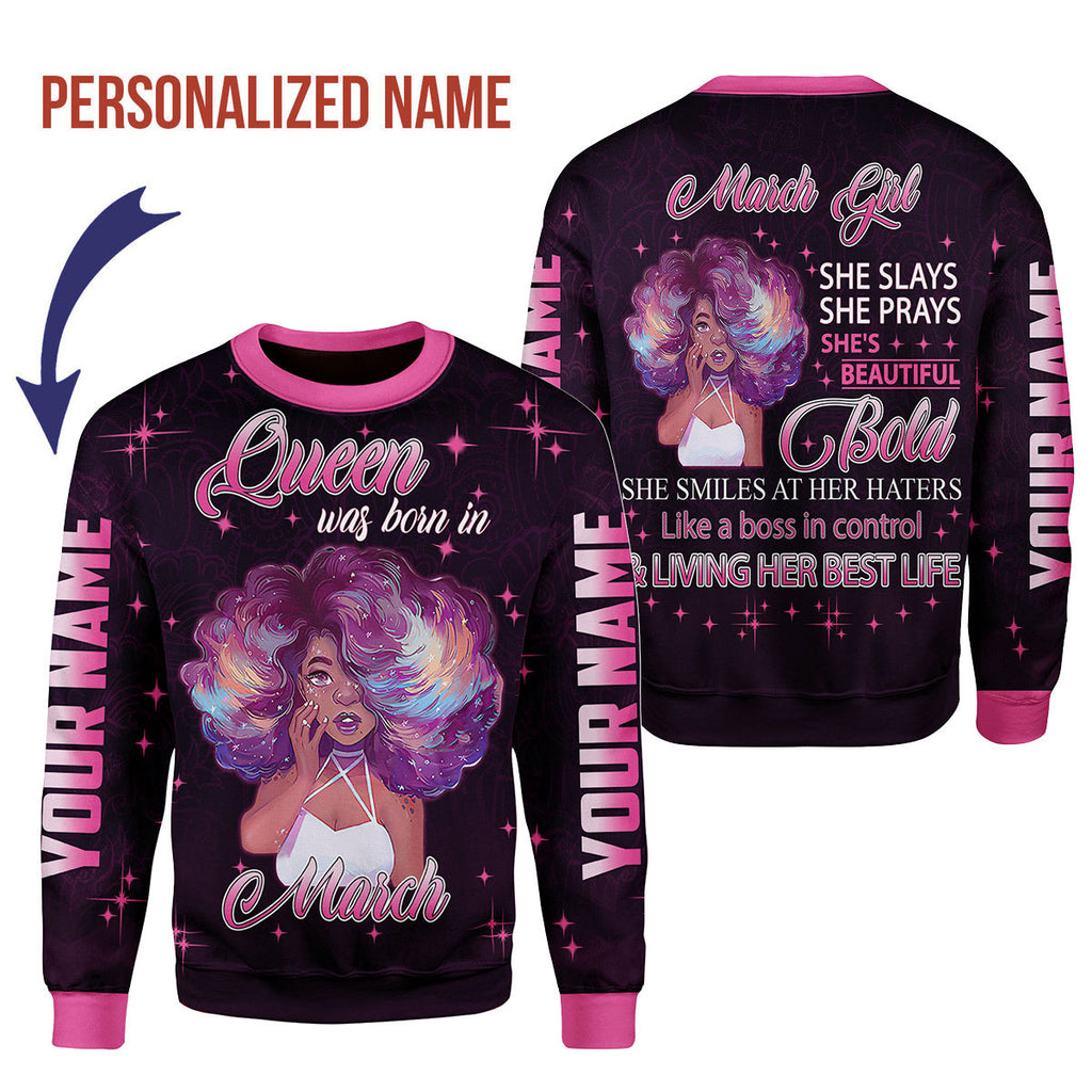 CustomsPig Personalized Tops March Girl She's Beautiful Bold All Over Printed