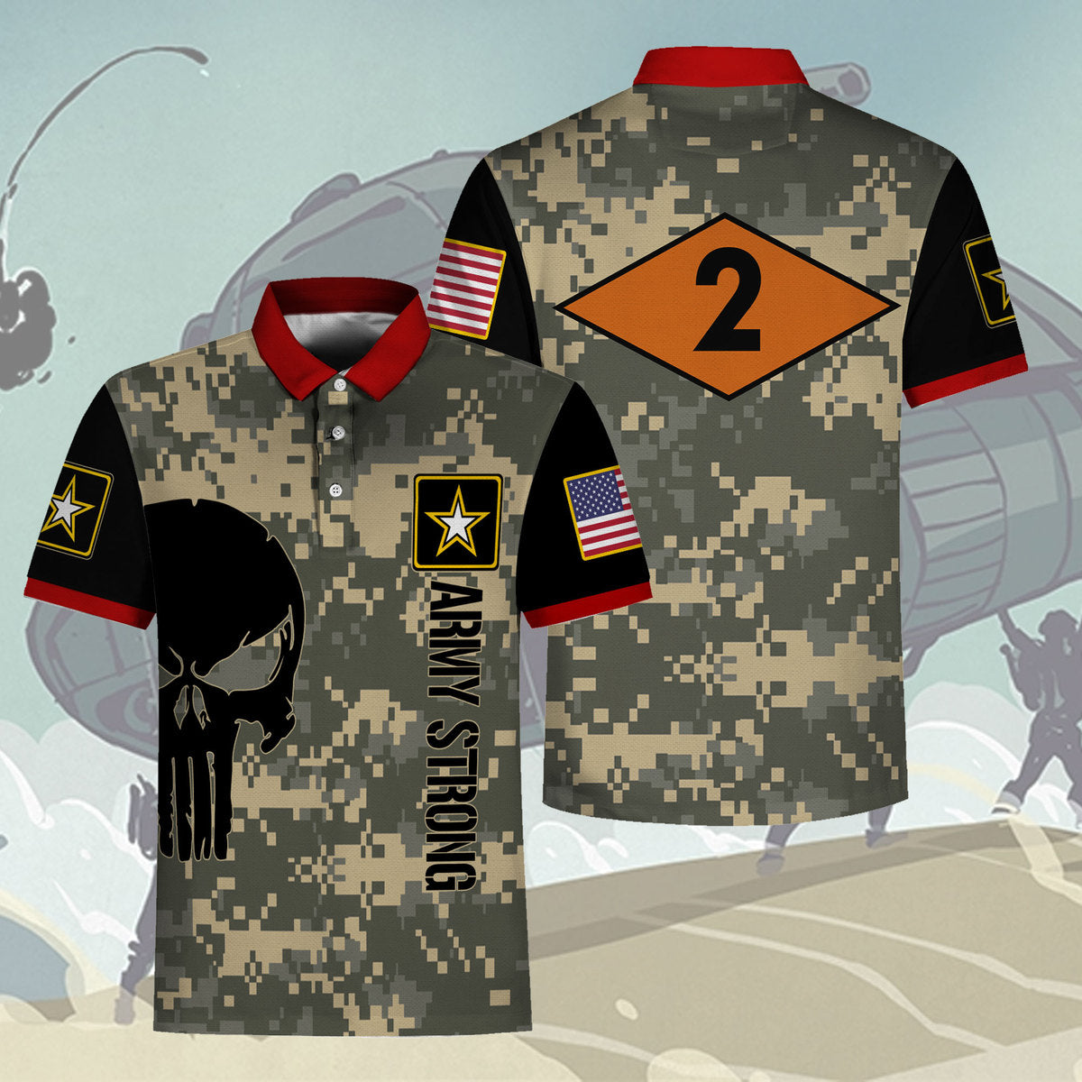 Customspig Polo Shirt Army Ranger Diamond 2nd Ranger Battalion 3D Apparel