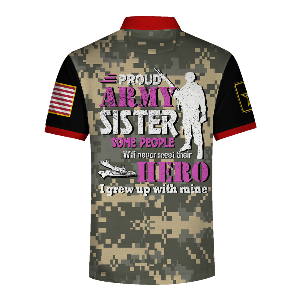 Customspig Polo Shirt US Army Logo Vector Proud Army Sister Some People Never Meet Their Hero Army 3D Apparel