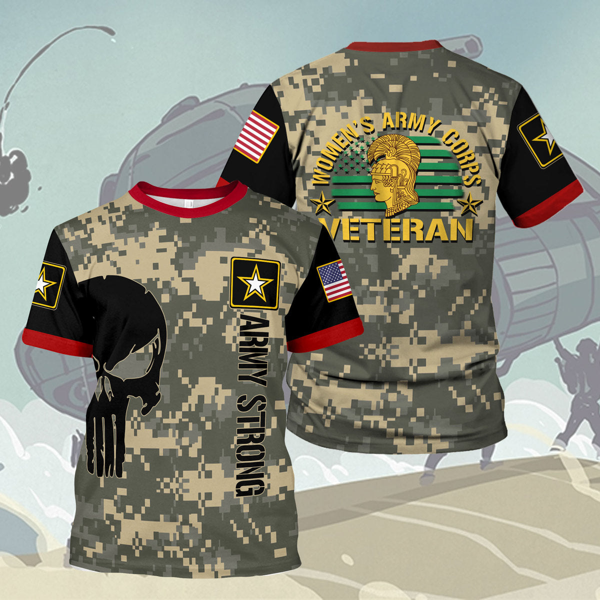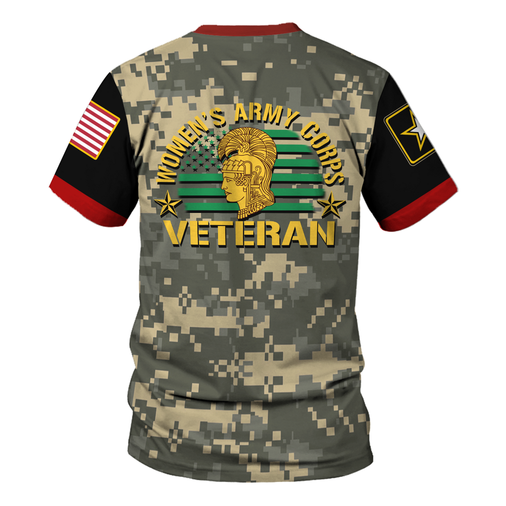 Customspig T-shirt US Army Military Flags Womens Army Corps Veteran 3D Apparel