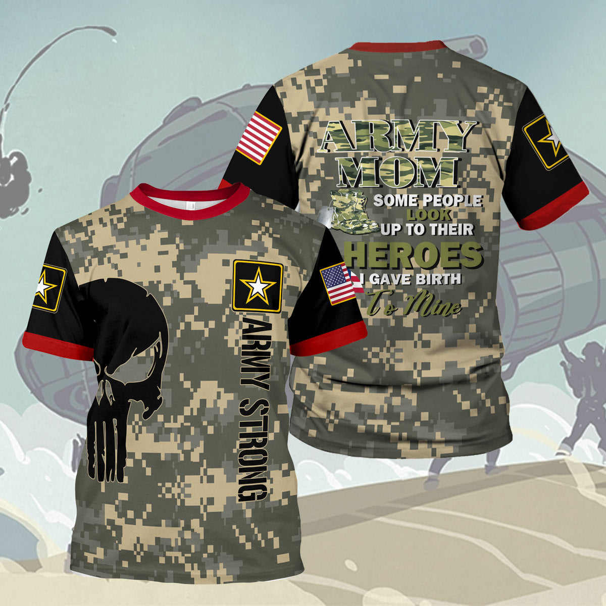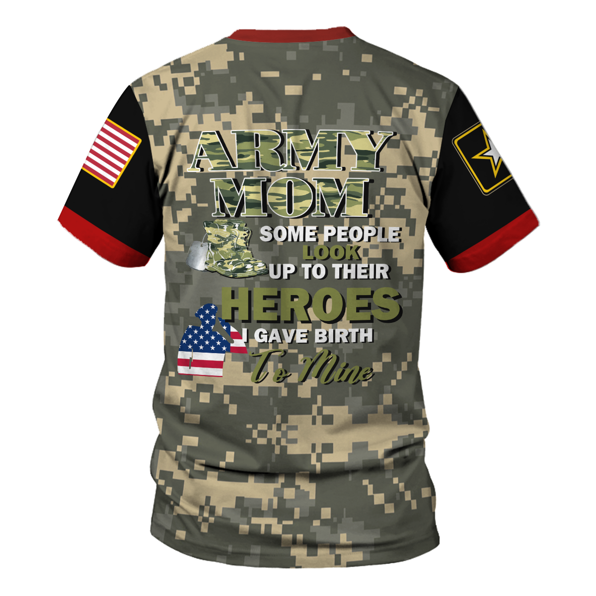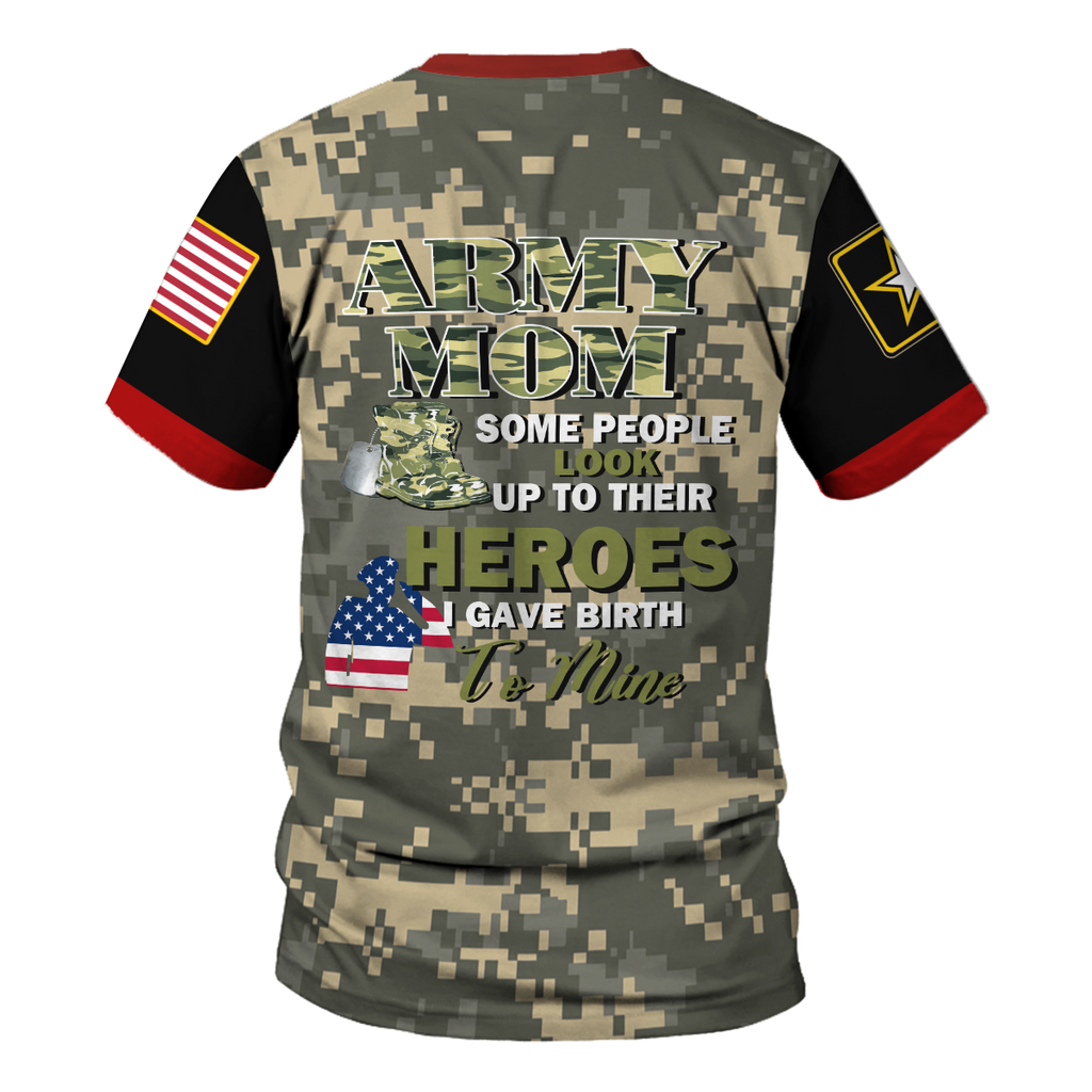 Customspig T-shirt US Army Mom Some People Look Up To Their Heros I Gave Birth To Mine 3D Apparel