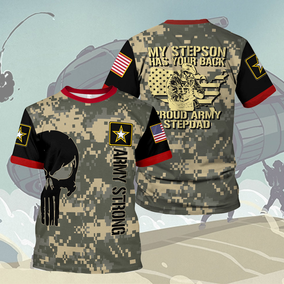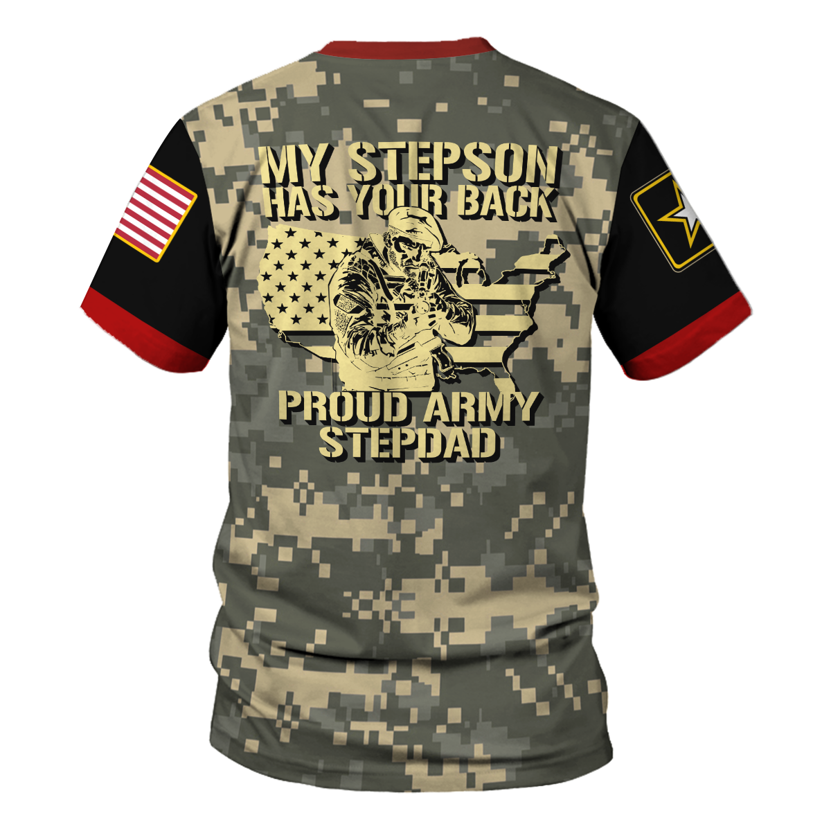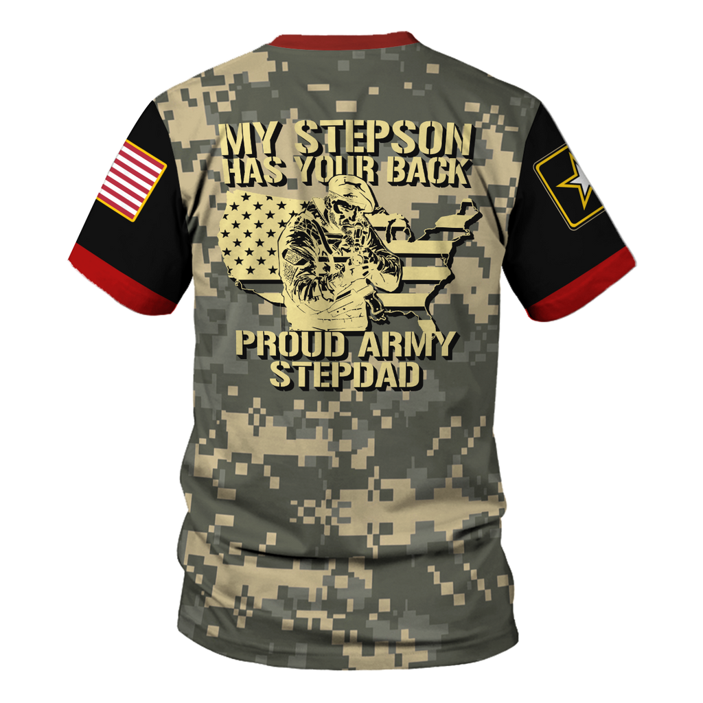 Customspig T-shirt US Army My Stepson Has Your Back Proud Army Stepdad 3D Apparel