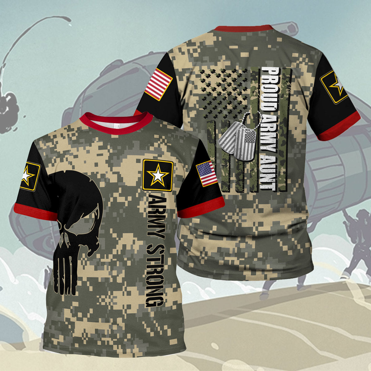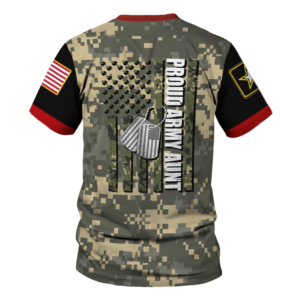 Customspig T-shirt US Army Proud Army Aunt American Flag 3D Apparel