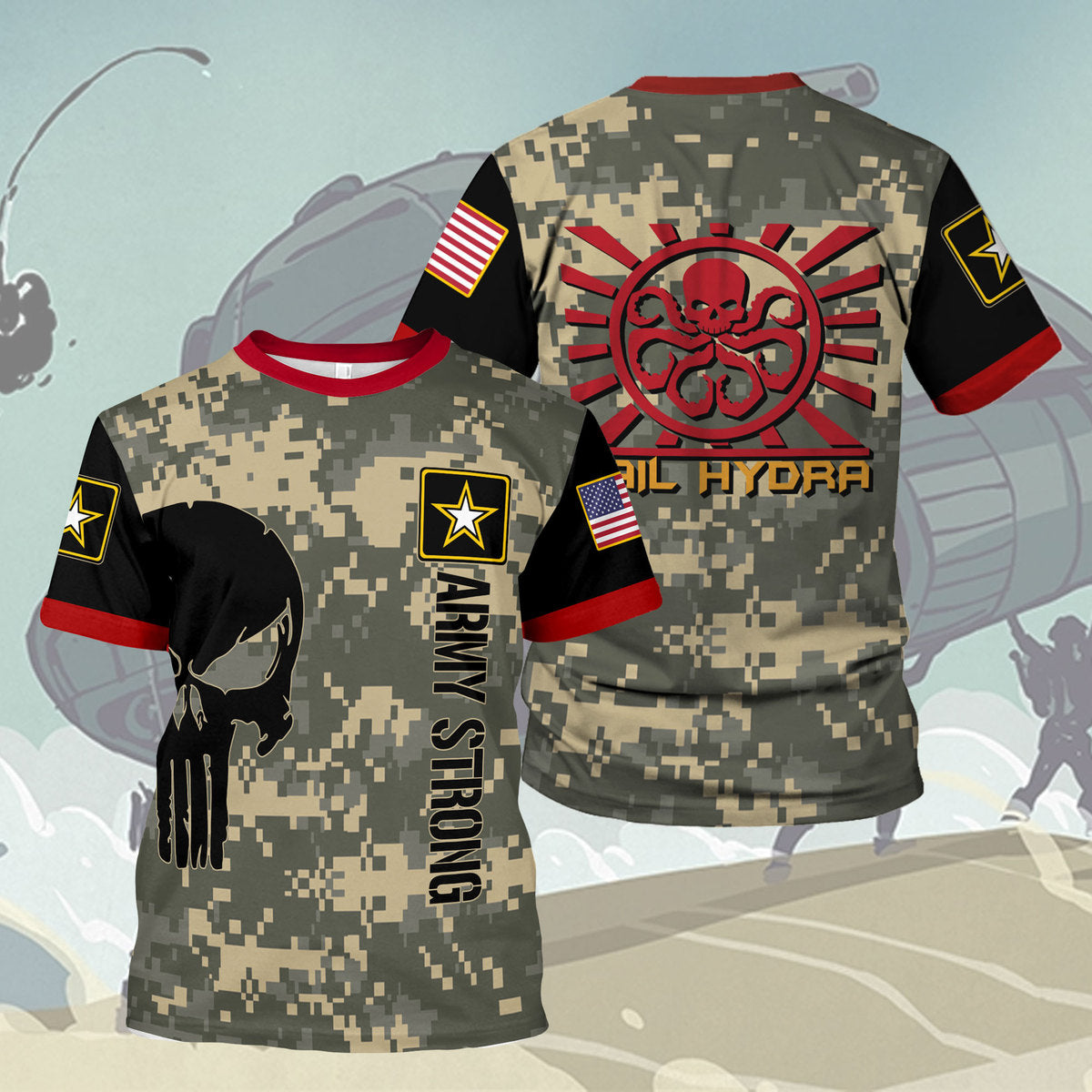 Customspig T-shirt US Army Signal Corps Marvel Hail Hydra Army Propaganda Graphic Army 3D Apparel