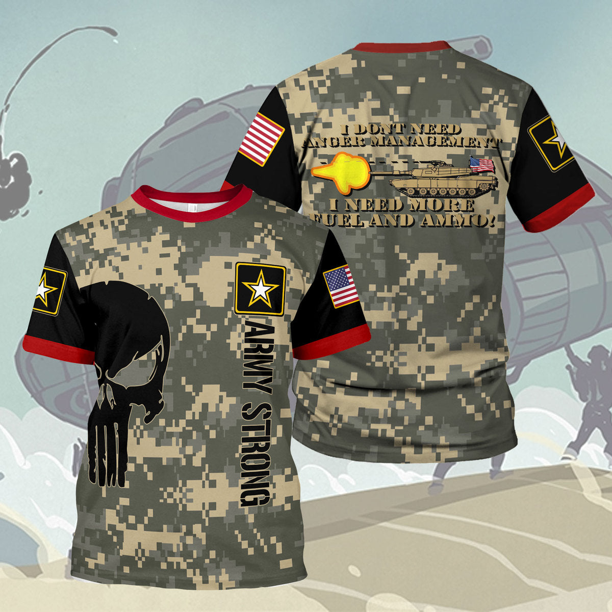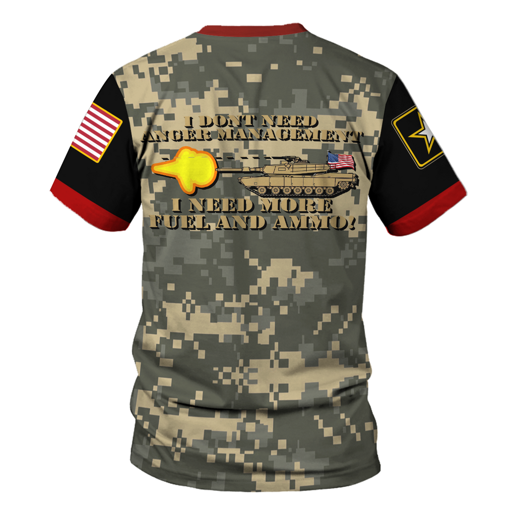 Customspig T-shirt US Army Vehicles M1 Abrams Tank Gift Patriotic American Flag 3D Apparel